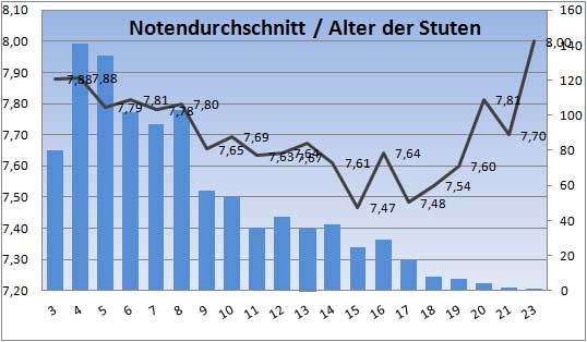 daß die jüngsten Stuten im Durchschnitt auch die besten Noten