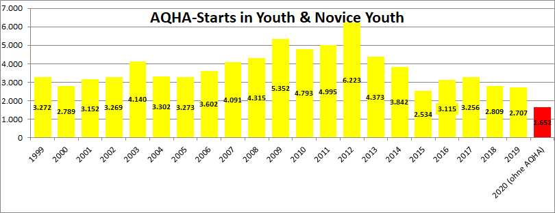 Besonders unter dieser Situation würden die Jugendlichen leiden: Mit einem Wegfall der AQHA-Klassen auf den Regiofuturitys und der Q20 sind nur noch rd. 1.700 Starts mit dem Nachwuchs zu erwarten,